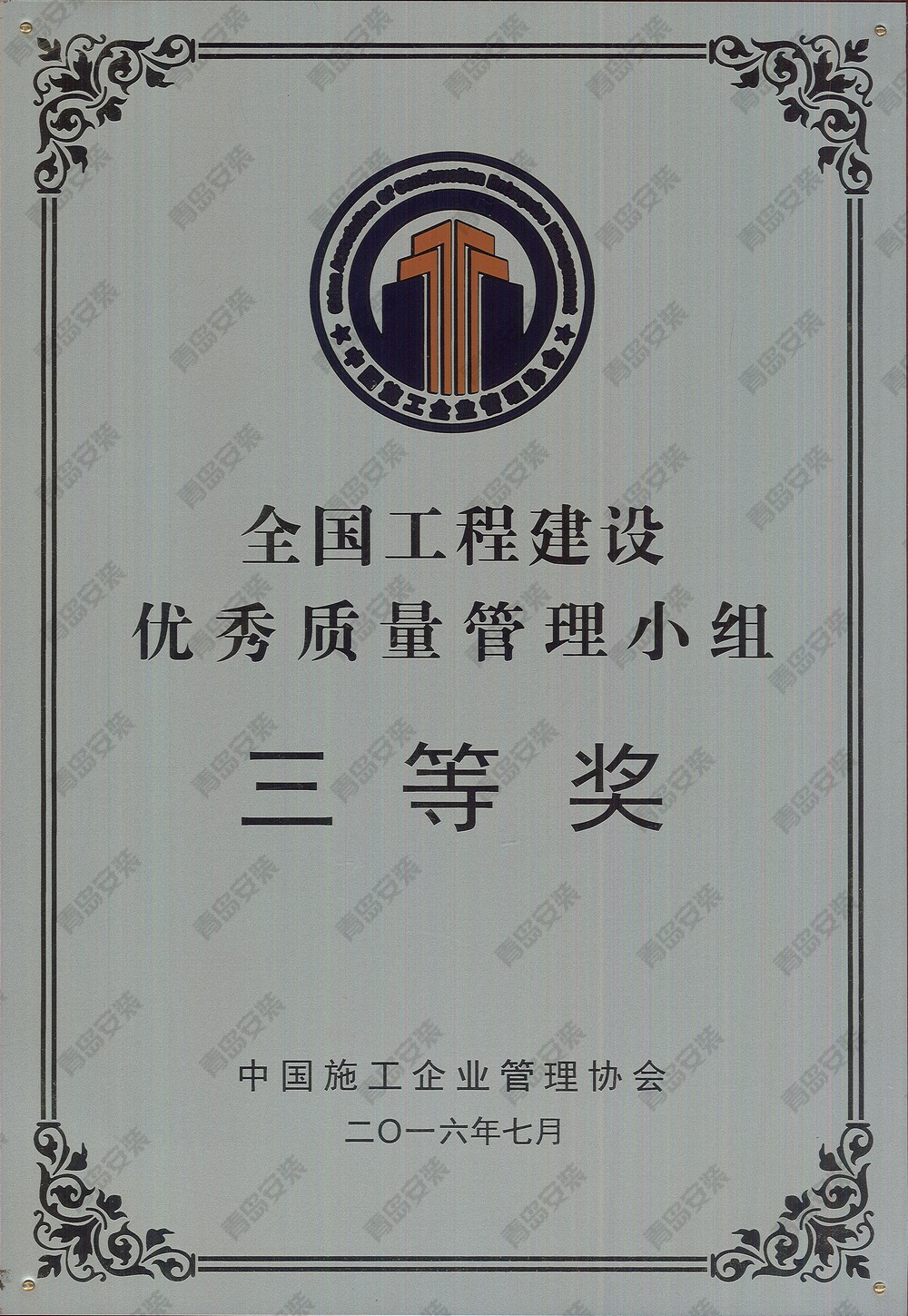 2016年度全國工程建設優(yōu)秀質(zhì)量管理小組三等獎