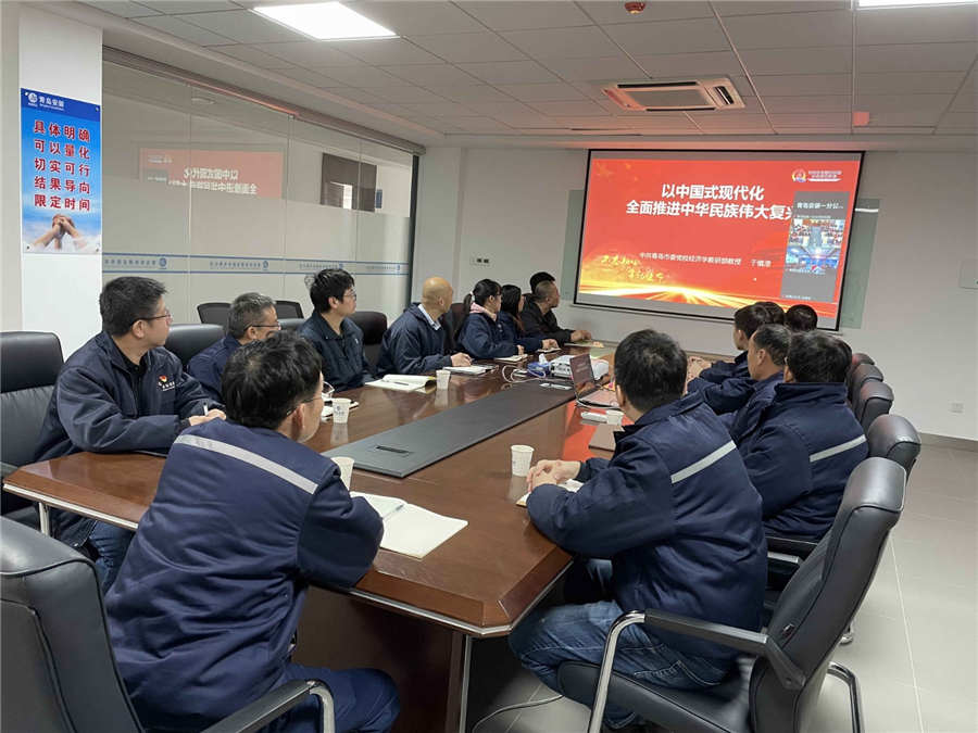 公司總部、各分公司全體黨員干部分別通過線上集中收看方式認真學習了青島市委黨校經濟學教研部副主任、教授于慎澄老師的《以中國式現代化全面推進中華民族偉大復興》課程。